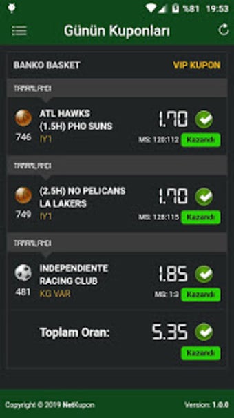 NetKupon - Banko İddaa Tahminleri, 'Spor' kategorisinin bir parçası olan Android için ücretsiz bir uygulamadır.